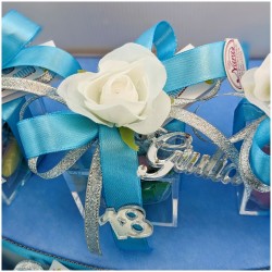 Bellissime scatoline in plexiglas con nome personalizzato in tinta argento e fiori bianchi com applicazione 18