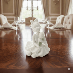 Bomboniera Hervit Bimba Ballerina Seduta in Porcellana Bianca con Tulipano Panna