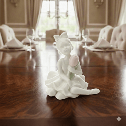 Delicata statuina di bimba ballerina seduta con tulipano rosa tra le mani, perfetta come bomboniera elegante per Comunione o Cresima.