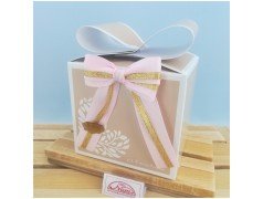 • Scatola in cartoncino rigido con fiocco in cartoncino e disegno floreale inclusa nel prezzo