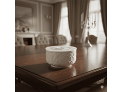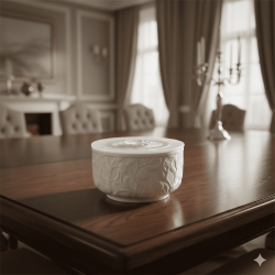 Bomboniera Hervit Ciotola Rotonda in Porcellana Bianca con Rose a Rilievo e Coperchio
