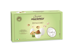 Confetti Maxtris aromatizzati di Italiana Confetti al gusto Pistacchio.Morbido e goloso confetto con all' interno la mandorla ricopera da cioccolato bianco aromatizzato ed un sottile strato di zucchero vanigliato