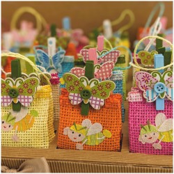 perfetta per il battesimo la nascita o il primo compleanno della tua bambina. Questa bomboniera è realizzata in tela incrociata rigida a forma di borsetta con manici con simpaticissime apette colorate sul davanti e molletta porta bigliettino a farfalla a creara una simpatica e unica composizione colorata.