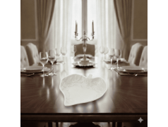 Graziosa ciotolina a forma di foglia con rose a rilievo, perfetta come porta confetti o bomboniera utile per cerimonie.