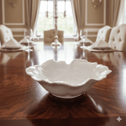 • Bomboniera Hervit Ciotola a Foglia in Porcellana Bianca con Bordo Ondulato