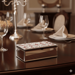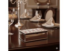 Cofanetto Byzantium Rosa e Argento in Legno/ Vetro con Specchi - 15x10x5cm