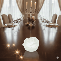 Suggestiva lampada a forma di rosa sbocciata che emana una luce soffusa, ideale come bomboniera elegante e romantica per Matrimonio.