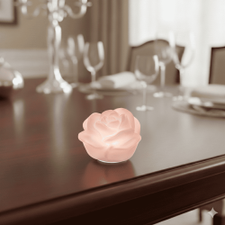 Suggestiva lampada a forma di rosa sbocciata che emana una luce soffusa, ideale come bomboniera elegante e romantica per Matrimonio.
