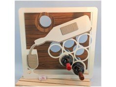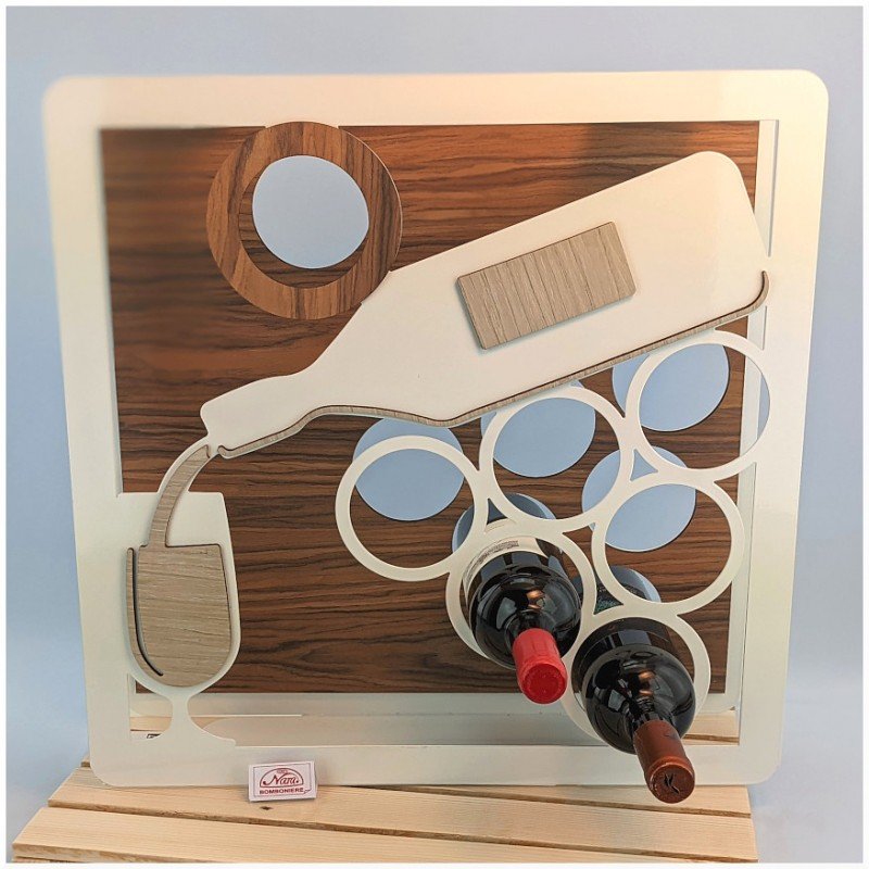 Bomboniera per testimoni padrino o madrina cantinetta in metallo bianco con inserto in legno per 6 bottiglie con bottiglia stilizzata pigna d'uva e bicchiere. Scatola in cartoncino bianco